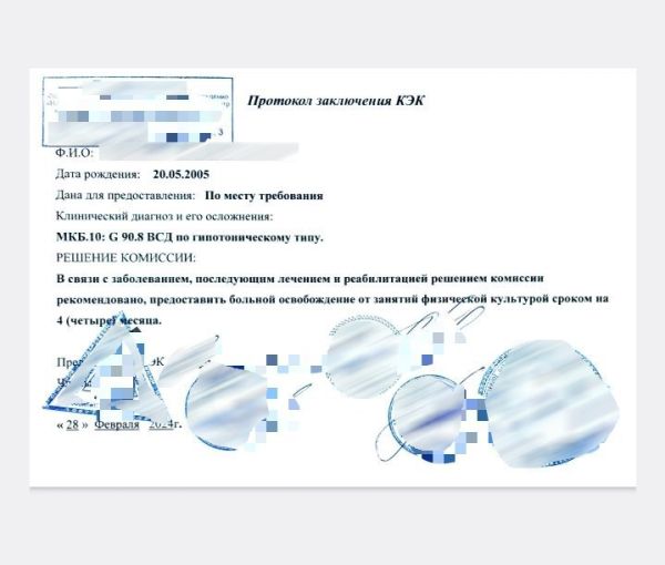 Оформление освобождения от физкультуры